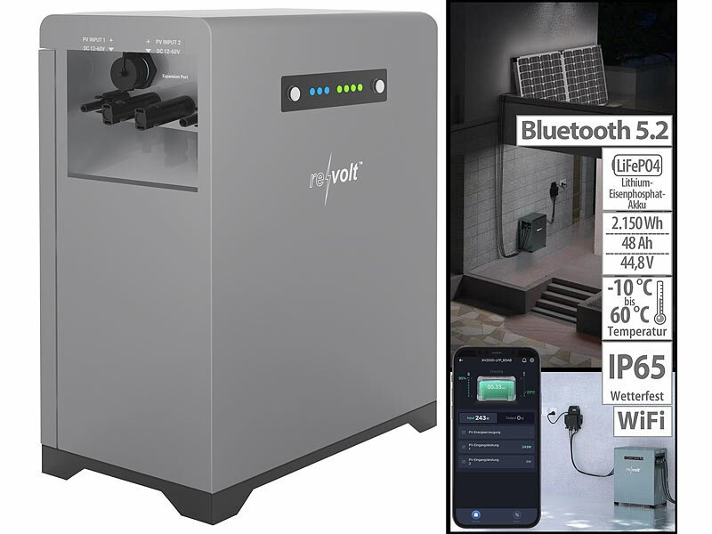 • 2.15 kWh LiFePO₄ • 80 % capacity after 6,000 cycles