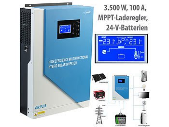 - Full hybrid operation: supports solar, battery, grid, and generator sources with priority settings.