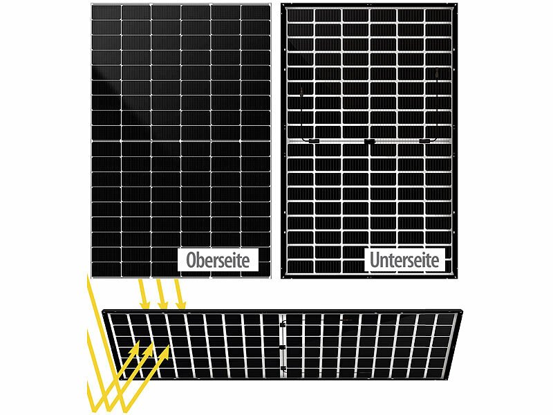 • Bifacial glass-glass modules: photoactive rear side can add up to ~25% yield with reflected light; module efficiency up to ~23.02%.
